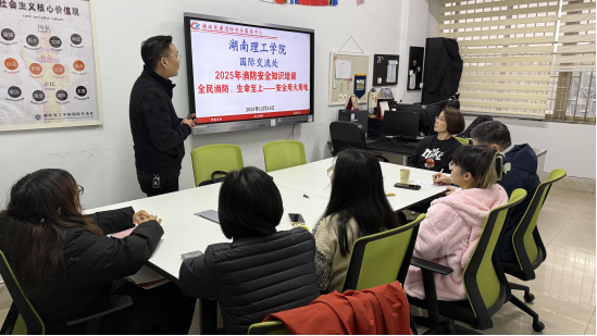 为进一步加强冬季校园消防安全管理,提升师生消防安全意识与应急自救能力,营造安全稳定的国际化校园环境,12月24日下午,国际交流处在北院行政楼316会议室组织开展冬季消防安全专题培训。本次培训特邀湖南楚潇消防安全服务中心专业讲解员授课,国际交流处全体工作人员、在校外籍教师代表及留学生代表参加。