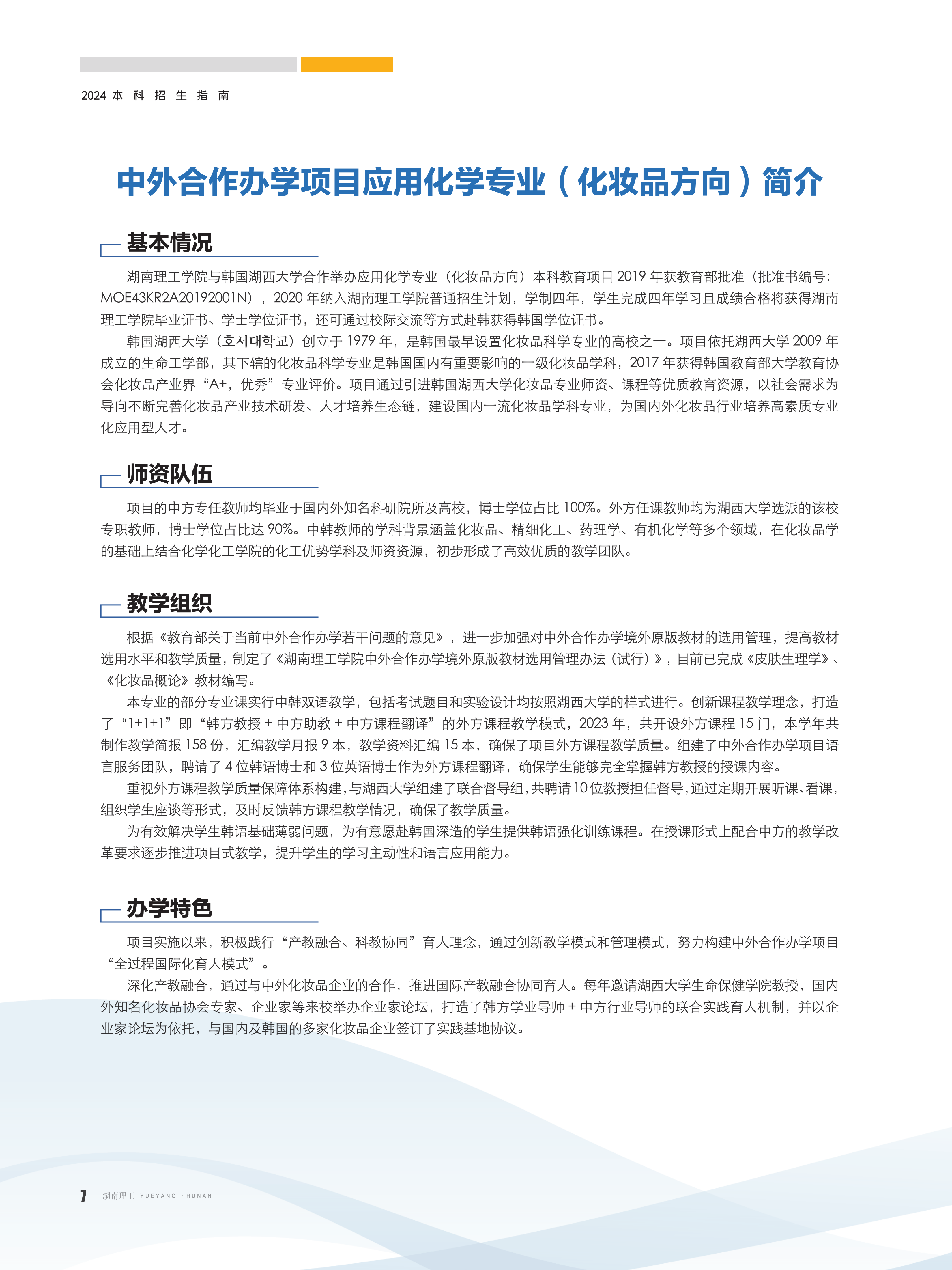 应用化学本科项目
